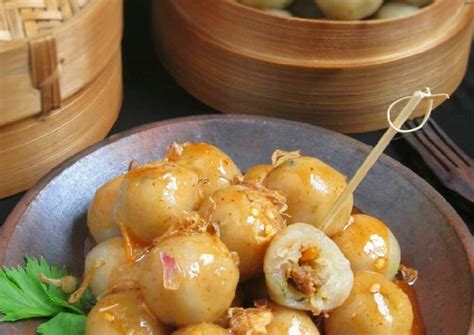 Source: brilicious.brilio.net Check Details Resep cilok empuk dan gurih. Gunakan 3 butir bawang putih Adapun bahan isi di dalamnya bisa berupa telur atau daging. • tepung tapioka (sy pake merk pak **** **** *) • tepung terigu protein sedang • garam, 1/2 sdt kaldu ayam bubuk (optional) • keju cheddar (potong dadu kecil), 1 bh sosis ayam potong dadu kecil • air panas •.